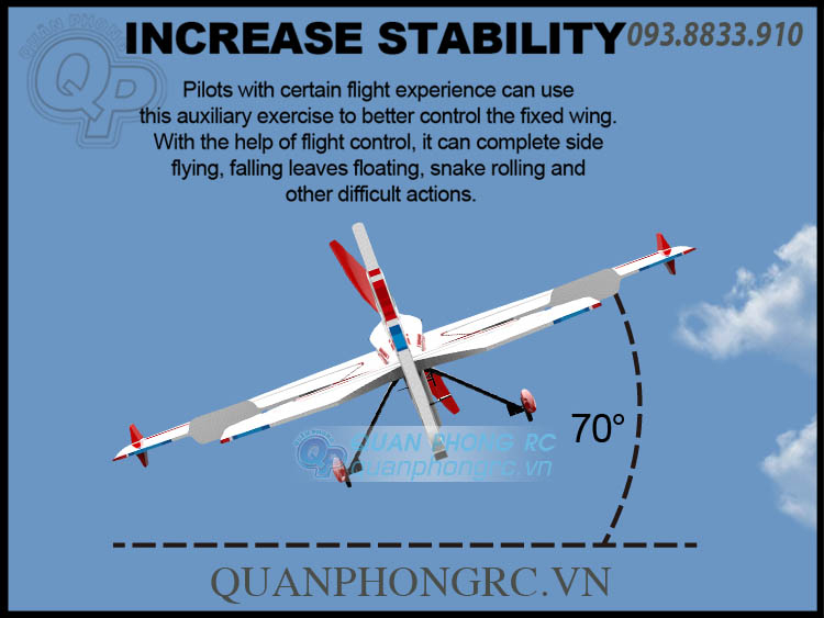 1. Bộ máy bay cánh bằng full combo QIDI-550 với chức năng kháng gió tốt, mạch cân bằng hỗ trợ bay và nhào lộn 3D6G, đặc biệt chức năng treo 3D Vertical mode chỉ với 1 nút gạt..