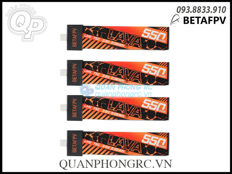 Battery Pack (4Pcs): https://quanphongrc.vn/ct/may-bay-dieu-khien/5469/betafpv-lava-550mah-1s-75c-3-8v-lihv-battery-bt2-0-plug-4-pcs.html
