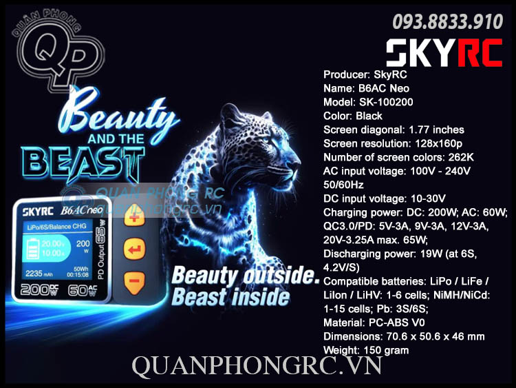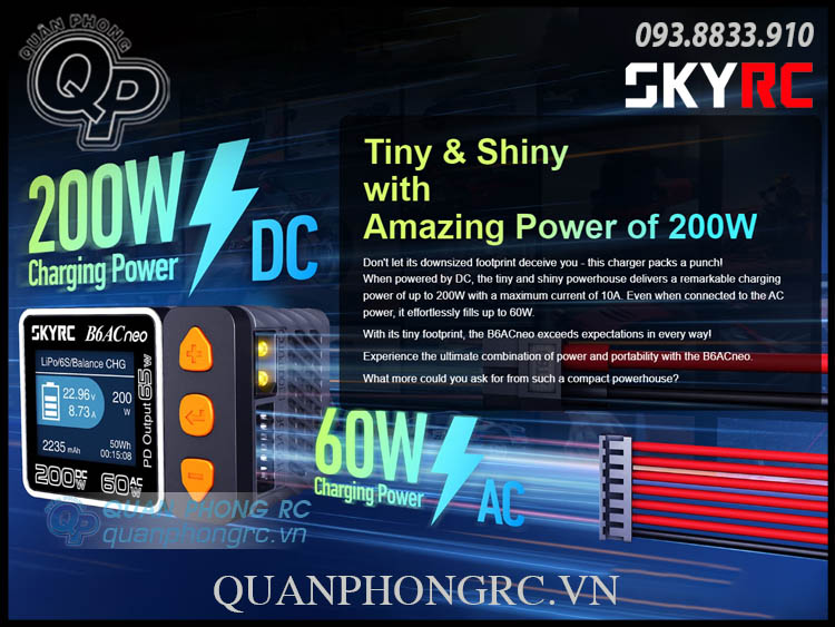 Bộ Sạc Chính Hãng SKYRC B6AC Neo AC/DC 200W Smart Charger