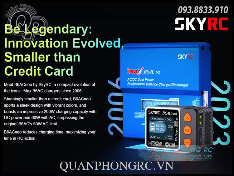 Meet B6ACneo by SkyRC, a compact evolution of the iconic iMax B6AC chargers since 2006.