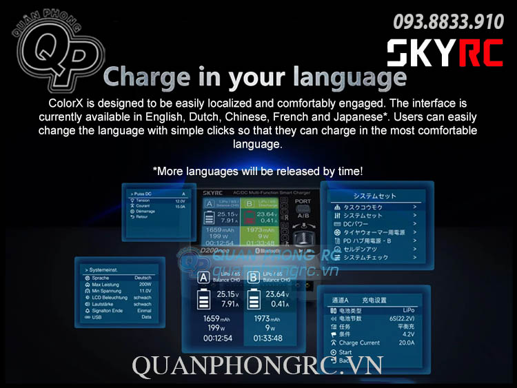 Dòng sạc: LiPo/LiFe/LiIon/LiHV/NiMH/NiCd/Pb:0.1-20.0A, parallel:20.0-35.0A.