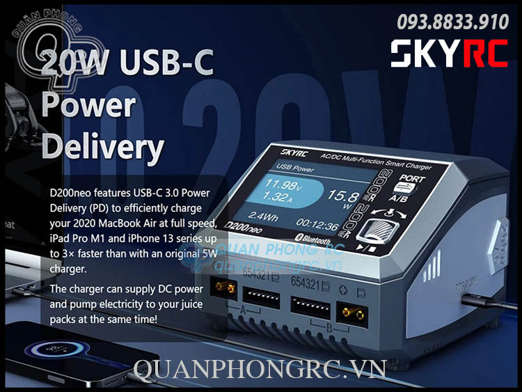 Bộ sạc đa chức năng AC/DC D200 neo là phiên bản nâng cấp của D200, được thiết kế đặc biệt cho máy bay mô hình. Nó cung cấp hai giao diện sạc riêng biệt và hỗ trợ hầu hết các loại pin được sử dụng trong ngành RC.
