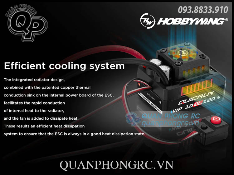 ESC không chổi than không cảm biến Hobbywing QuicRun 10BL120 G2 120A 1/10 được thiết kế để trở thành ESC cực kỳ hiệu quả nhằm cải thiện độ ổn định và độ tin cậy. Hiệu quả làm mát của chiếc ESC này đến từ thiết kế tản nhiệt tích hợp kết hợp với lớp phủ tản nhiệt bằng đồng. Có khả năng bơm ra 120 ampe liên tục, ESC này đã sẵn sàng để hoạt động!