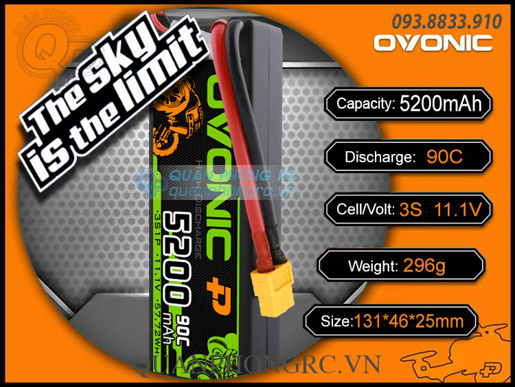 Ovonic 5200mAh 3S 90C 11.1V LiPo Battery XT60 Plug