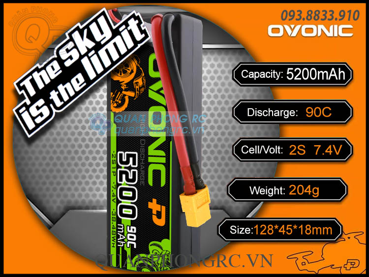 Ovonic 5200mAh 2S 90C 7.4V LiPo Battery XT60 Plug