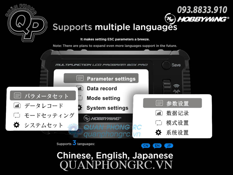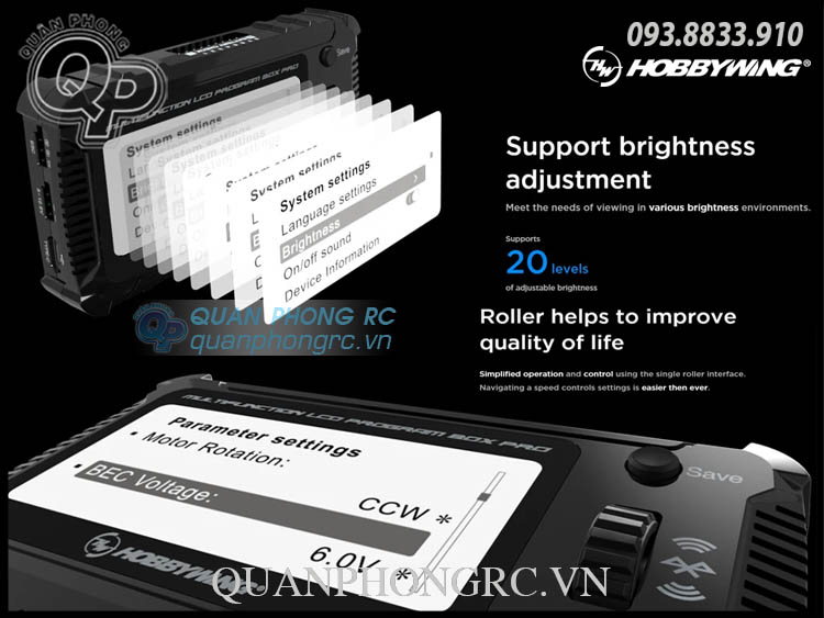 - As an independent parameter adjustment device, directly use the built-in LCD screen to display, set, and share ESC parameters (import).