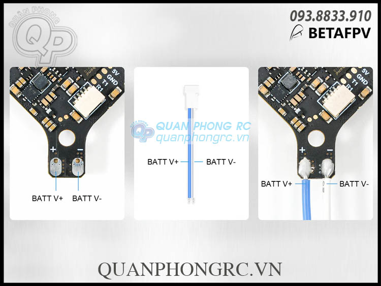 The BT2.0 U Cable Pigtail and the BT2.0 1S Whoop Cable Pigtail are composed of blue wire and white wire. The blue wire is the positive pole(+), and the white wire is the negative pole(-). When you resold your board, please pay attention to the connection method.