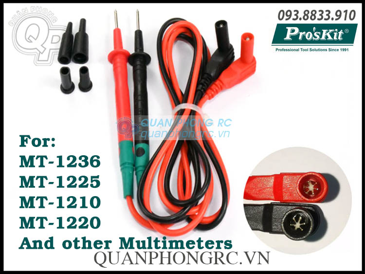 - Tương thích với đồng hồ đa năng Pro'skit MT-1236, MT-1225, MT1210, MT-1220 và hầu hết các đồng hồ đa năng thông dụng.