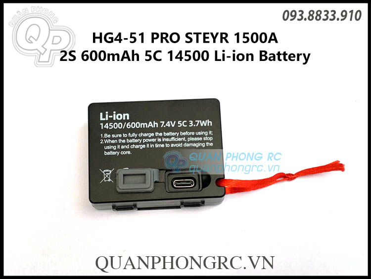 Pin 14500 600mAh 2S 7.4V 5C LiOn Battery For HG4-51 PRO STEYR 1500A Car