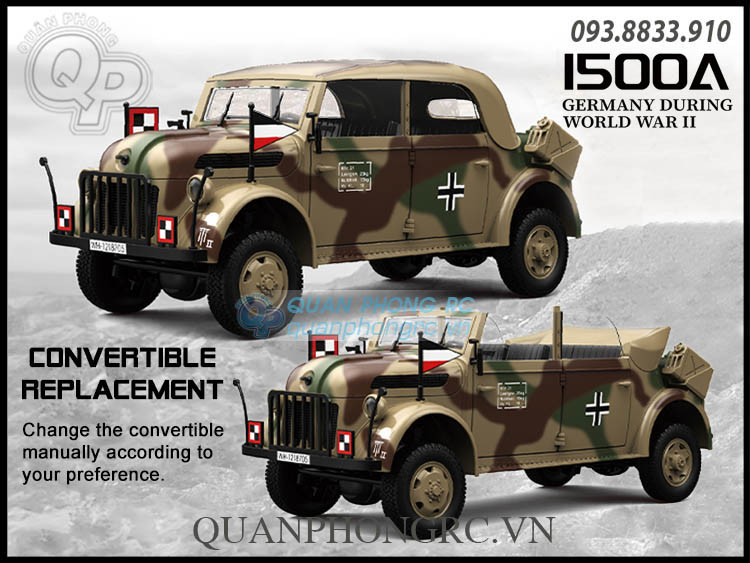 Steyr 1500A là mẫu xe chỉ huy chiến trường cho các sĩ quan cấp cao, nhưng cũng một phần là xe cho các viên chức cấp cao của Đức trong CTTG II. Sau này một số 1500A đã được chuyển đổi thành xe chở quân, xe hộ tống y tế, chở binh lính và vũ khí. HG4-51 PRO là mẫu xe mô phỏng Steyr 1500A với tỉ lệ 1:18, khung xe bằng hợp kim, chi tiết mô phỏng tinh xảo, vừa thích hợp sưu tầm làm mô hình tĩnh, vừa có thể điều khiển từ xa với thiết kế chi tiết, độc đáo và tinh tế.