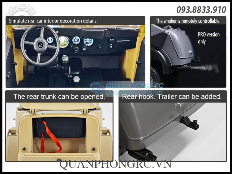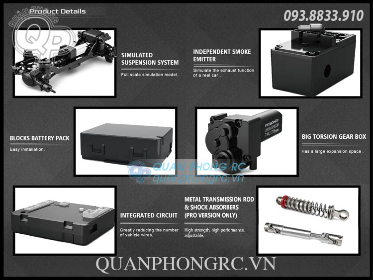 | HỆ THỐNG MÔ PHỎNG | Đèn cơ bản. | Đèn LED mô phỏng, âm thanh động cơ và còi báo, chế độ xả khói (cần mua dầu khói riêng) điều khiển từ xa tăng giảm. |