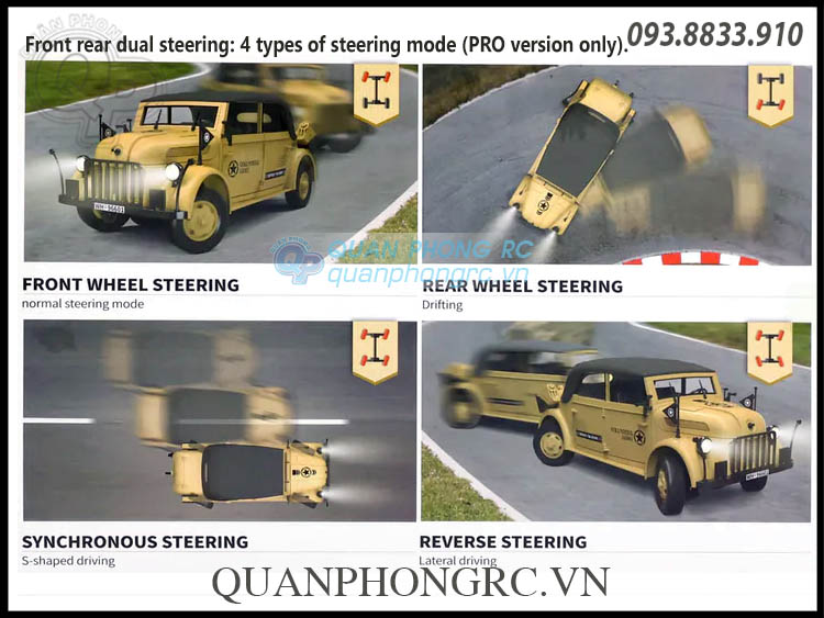 | SERVO LÁI 9G | Hệ thống lái đơn bánh trước. | Hệ thống lái kép trước sau (4 chế độ lái khác nhau). |