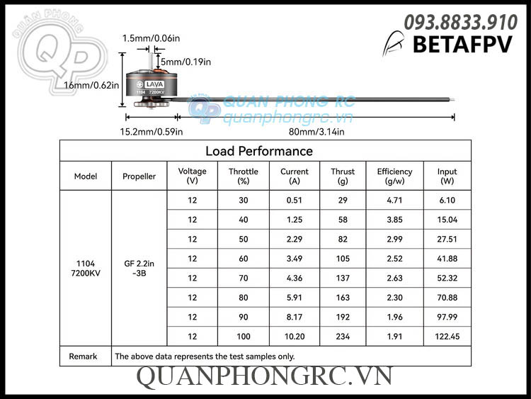 - Items: LAVA Series 1104 | 7200KV Brushless Motors