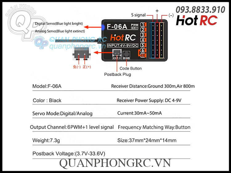 Bộ Thu Sóng HOTRC F-06A 6CH PWM Receiver Cho Xe Và Tàu