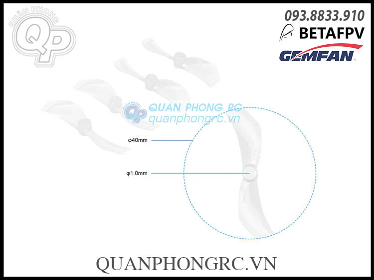 2 Cặp Cánh 2 Lá GEMFAN 40mm 2-Blade Propellers 1.0mm Shaft (4 Cái)