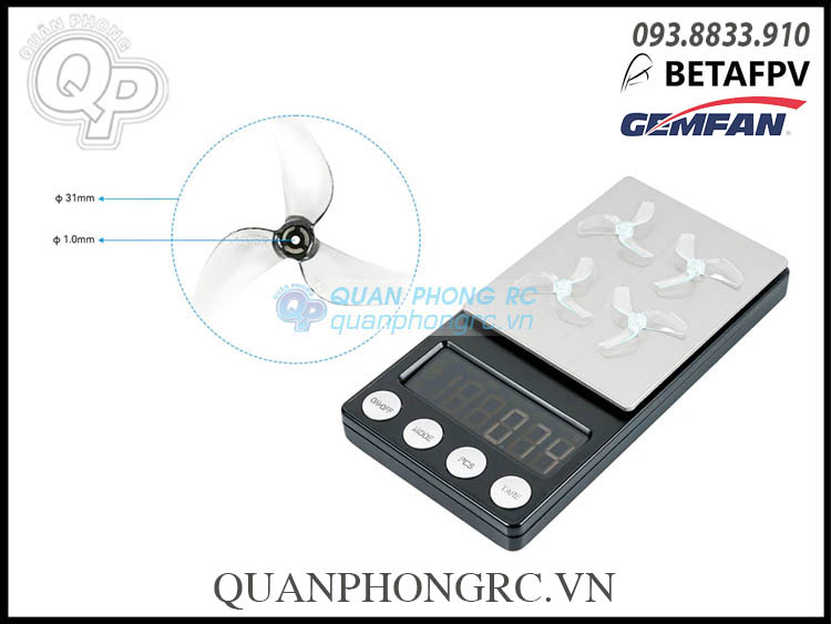 2 Cặp Cánh 3 Lá GEMFAN 1219S 3-Blade Propellers 1.0mm Shaft (4 Cái)