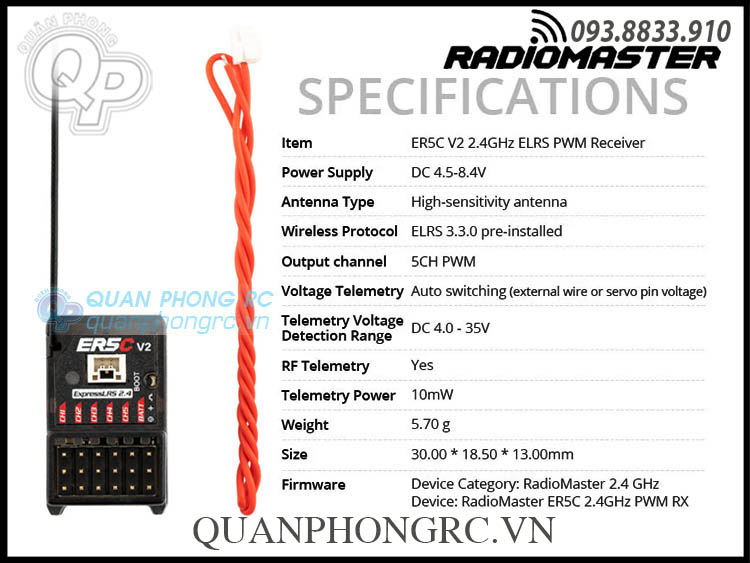 - Mặt hàng: Bộ thu PWM ER5C V2 2,4 GHz