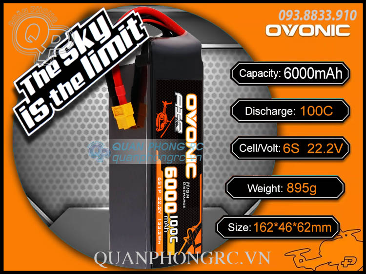 Ovonic AIR 6000mAh 6S 100C 22.2V LiPo Battery XT60 Plug