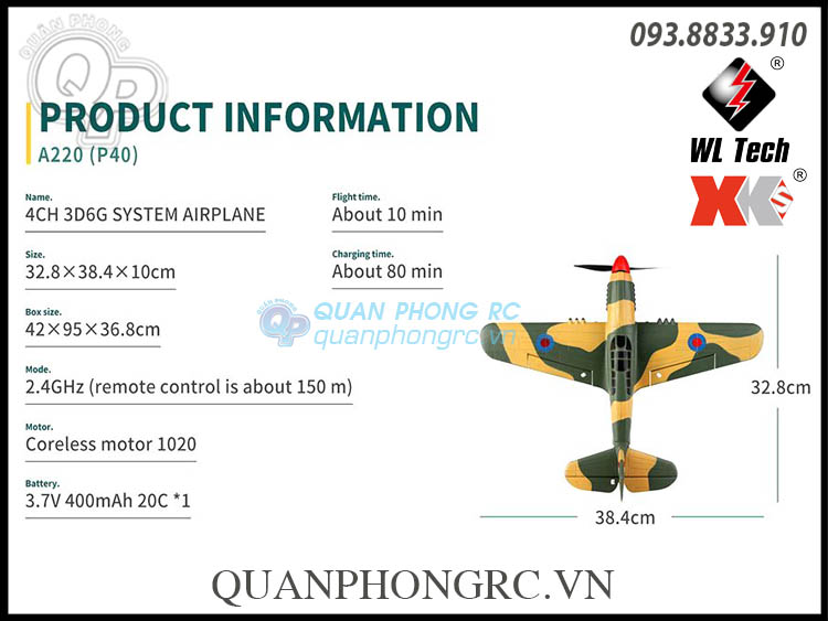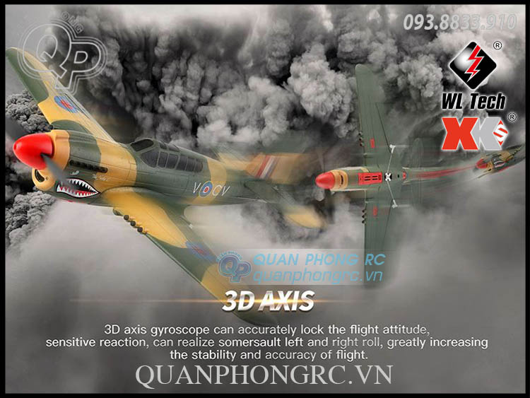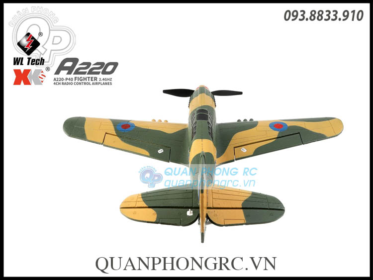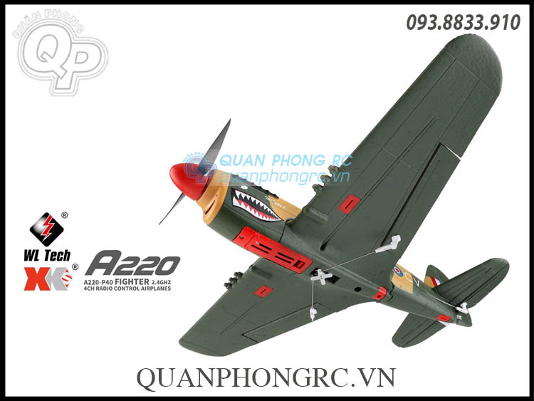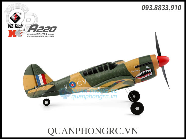 - XK A220 P40 là máy bay điều khiển từ xa của hãng XK, mô phỏng theo mẫu Curtiss P-40 trong thực tế, là kiểu máy bay tiêm kích và máy bay tấn công mặt đất của Mỹ bay lần đầu vào năm 1938, được dùng với số lượng lớn trong Thế Chiến II. Mạch điều khiển bay bổ sung thêm hai slot chuyển đổi receiver. 5V phù hợp với FUTABA (S-BUS) J và các bộ thu khác có cổng (S-BUS), và 3V phù hợp với bộ thu DSM.