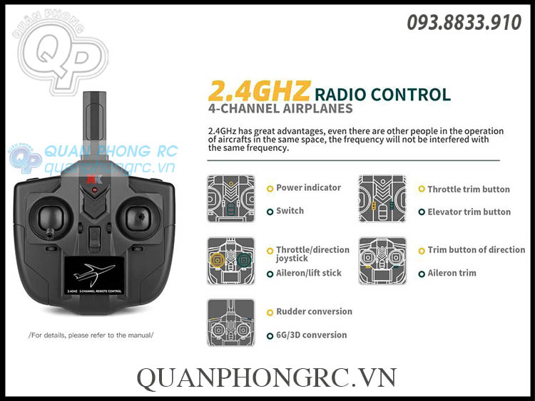 - Chế độ điều khiển từ xa: 2.4G, 4 kênh