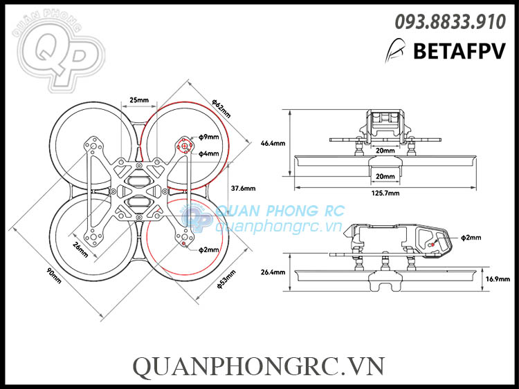 - Weight: 26.7g(With HD VTX Bracket), 13.8g(Whoop Duct), 4.1g(Only HD VTX Bracket)