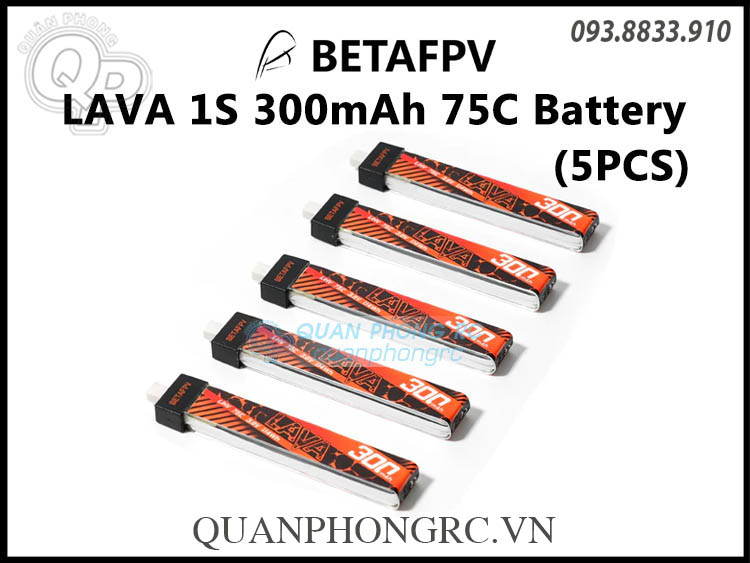 BETAFPV LAVA 300mAh 1S 75C 3.8V LiHV Battery BT2.0 Plug (5 Pcs)