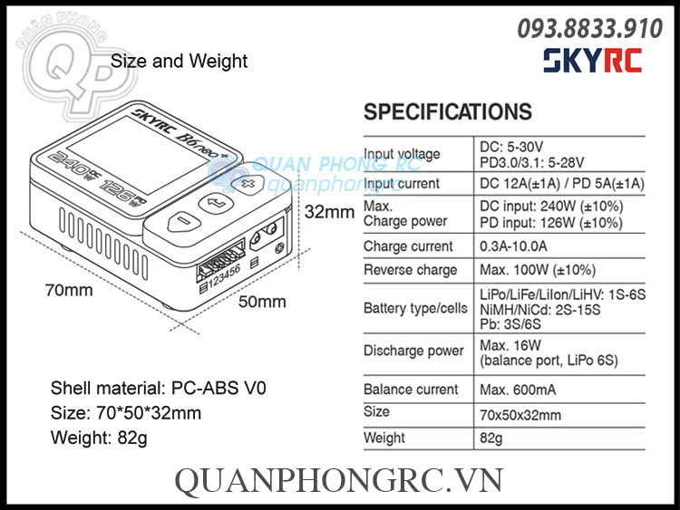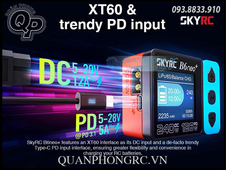 Bộ Sạc Chính Hãng SKYRC B6 Neo+ Smart Charger 240W/126W DC/PD Dual Input