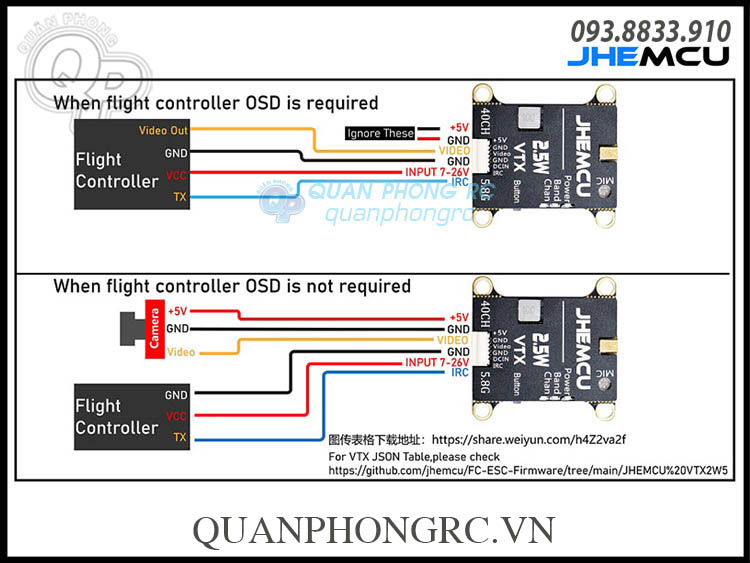 VTX JHEMCU 5.8G 2.5W 40CH Video Transmitter