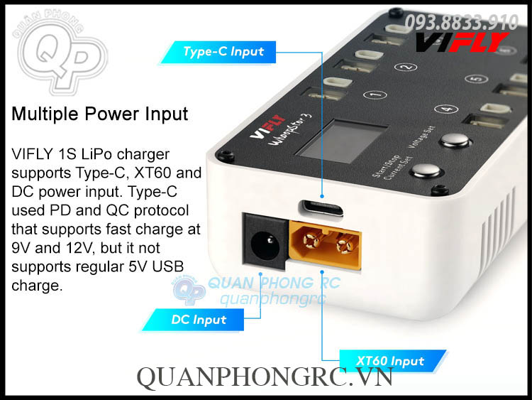 Bộ Sạc VIFLY WhoopStor 3 6 Port 1S Balance Storage Charger PH2.0 & BT2.0