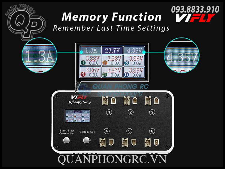 - 【Memory Function】VIFLY WhoopStor 3 added the memory feature of remembering last time settings, no need to set the charge current every time you turn it on.