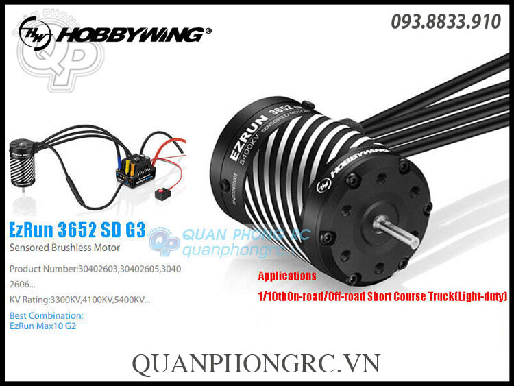 HobbyWing EZEUN 3652 SD G3 Sensored Brushless Motor FEATURE: