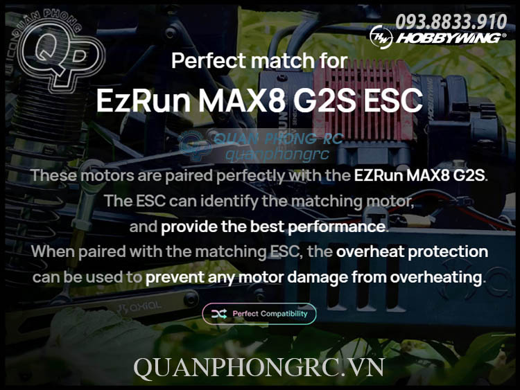 Motor EzRun MAX 4200 Series G2R tương thích hoàn hảo với ESC EZRUN MAX8 G2S của Hobbywing. ESC có thể tự động nhận diện motor này, tạo ra một hệ thống nguồn có cảm biến hoàn chỉnh, mang lại hiệu suất điều khiển tốt hơn và cảm giác điều khiển tinh tế hơn, đồng thời hỗ trợ bảo vệ quá nhiệt cho motor.