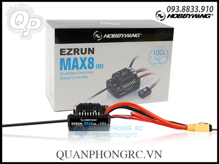 Hobbywing Ezrun MAX8 G2S Brushless ESC - Bluetooth™ 160A For 1/8 Truck (30103205)
