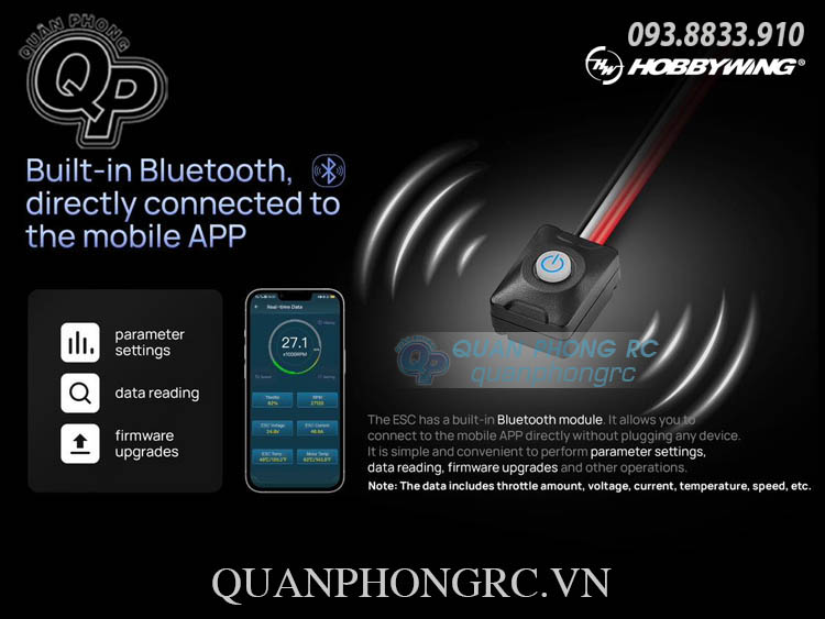 - Quạt làm mát: Cung cấp ổn định 6V, 7.4V hoặc 8.4V từ BEC tích hợp