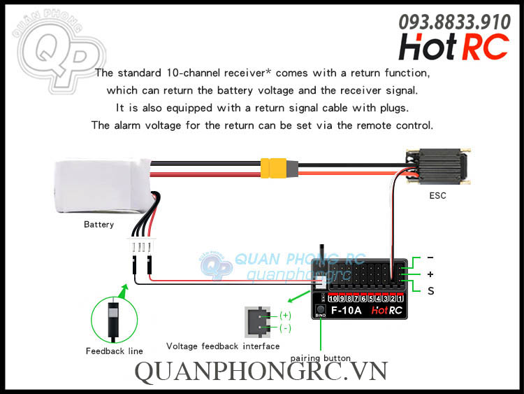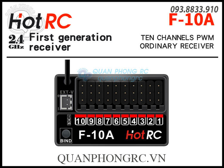 Bộ Thu Sóng HOTRC F-10A 10CH PWM Receiver Cho Xe Và Tàu