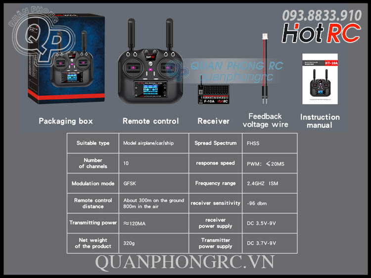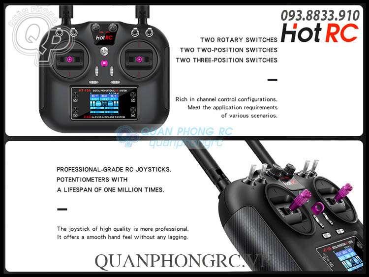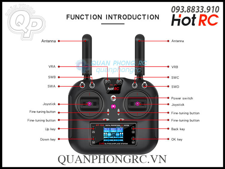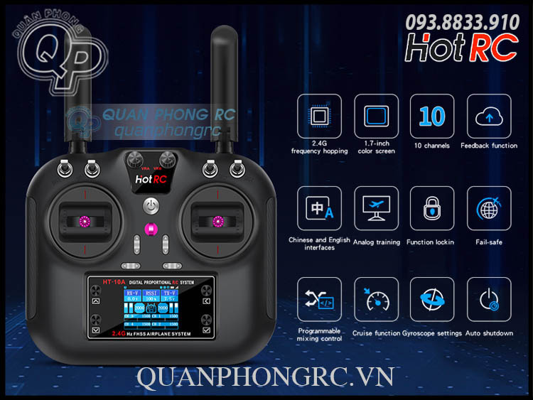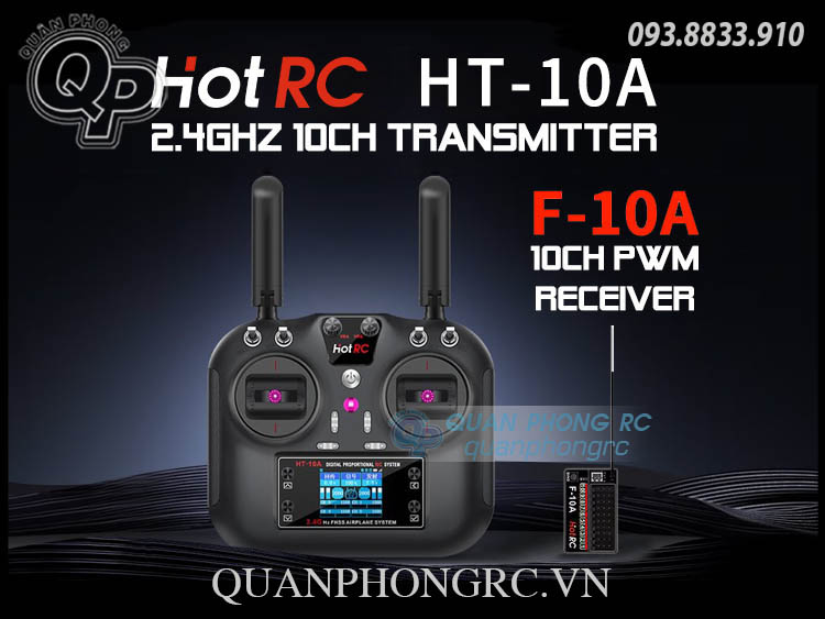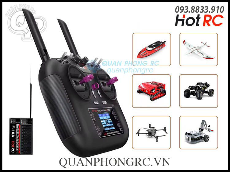 Tay Điều Khiển HOTRC HT-10A 10CH 2.4G RC Transmitter Cho Xe Và Tàu + Rx F-10