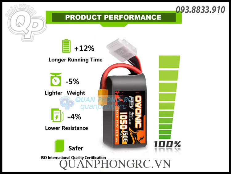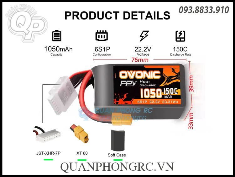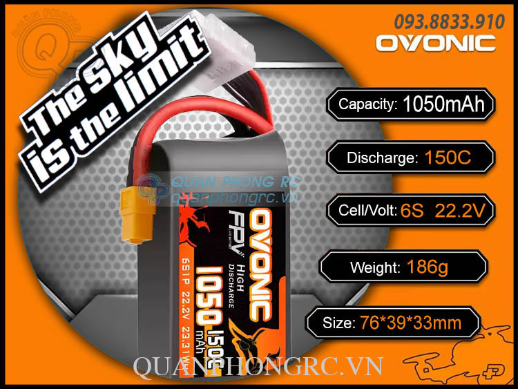 Ovonic 1050mAh 6S 150C 22.2V LiPo Battery XT60 Plug