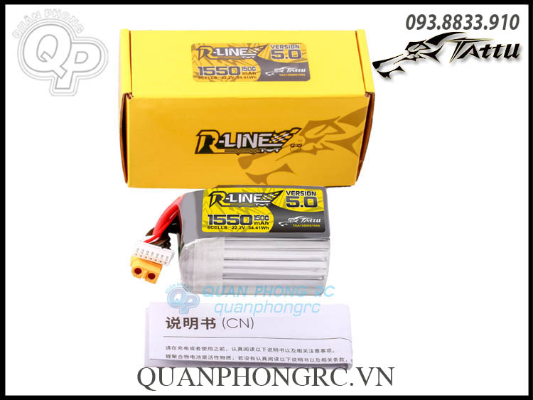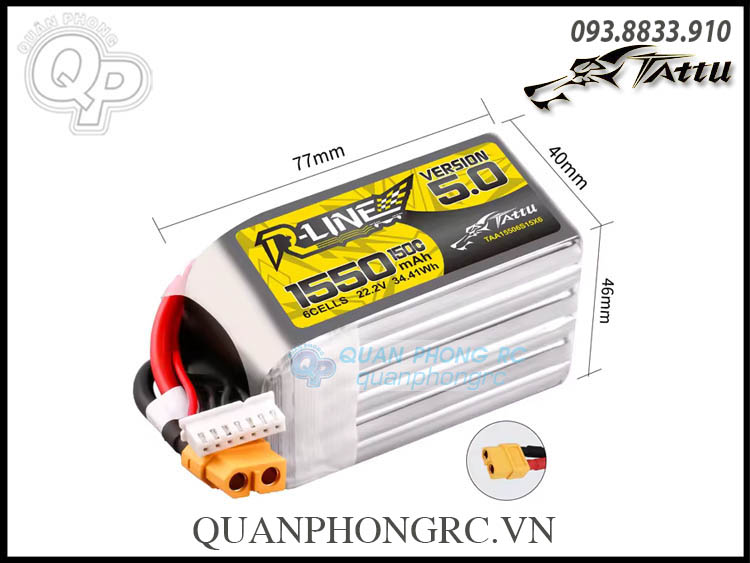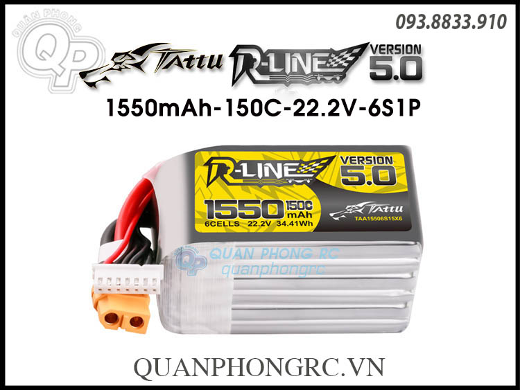 Tattu R-Line V5 1550mAh 6S 150C 22.2V LiPo Battery XT60