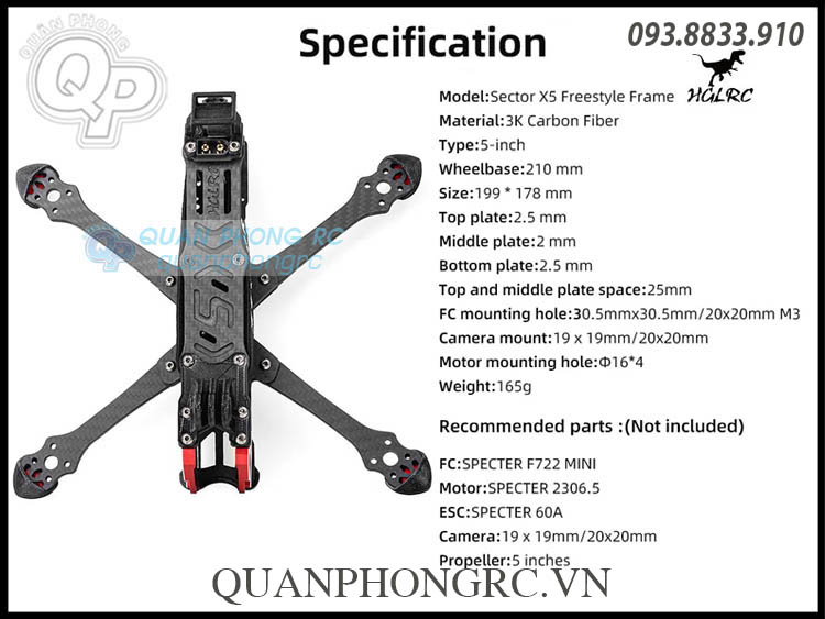 Khung Máy Bay HGLRC Sector X5 FR 5 inch Freestyle FPV Frame Kit (Không Gồm Đồ Điện)