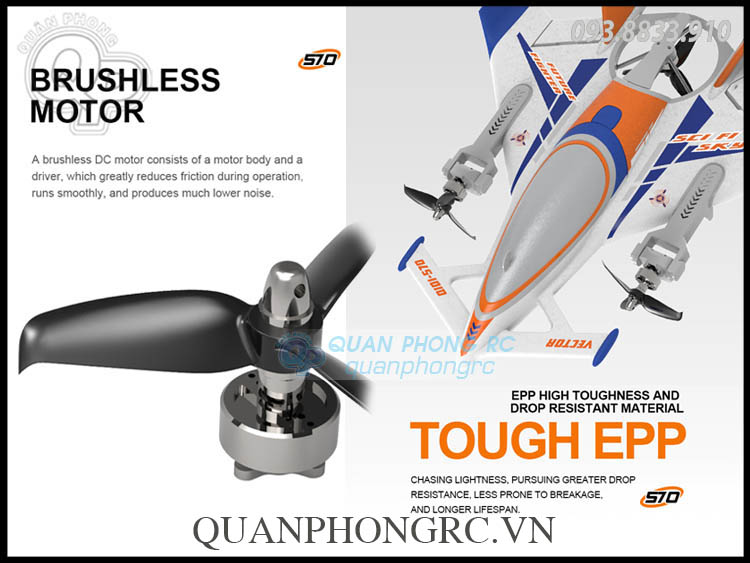 Máy Bay EPP QIDI-570 2.4GHz 6CH 315mm Wingspan Gyro Brushless RC Airplane RTF