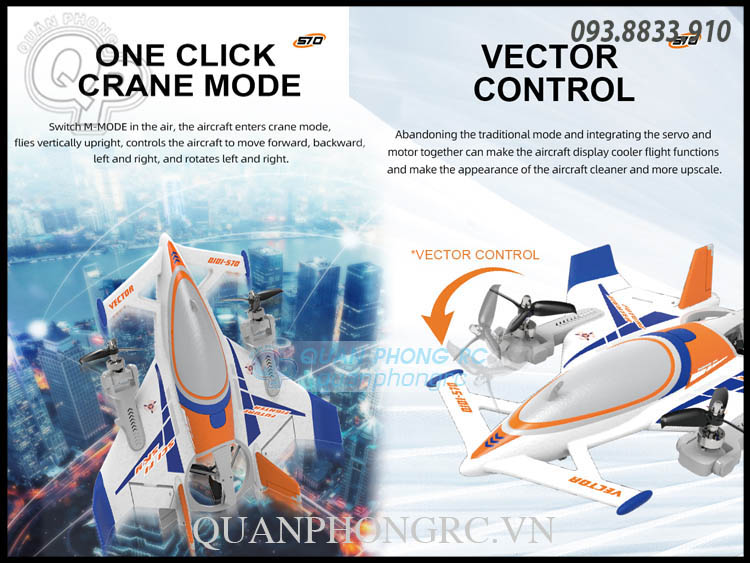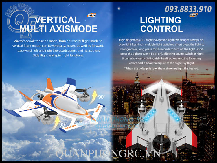 - Vercital Multi Axis Mode: Aircraft aerial transition mode, from horizontal flight mode to vertical flight mode, can fly vertically, hover, as well as forward, backward, left and right like quadcopters and helicoptersSide flight and spin flight functions.