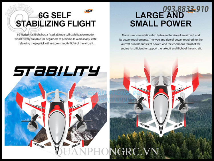 - Vector Control: Abandoning the traditional mode and integrating the servo and motor together can make the aircraft display cooler flight functions and make the appearance of the aircraft cleaner and more upscale.