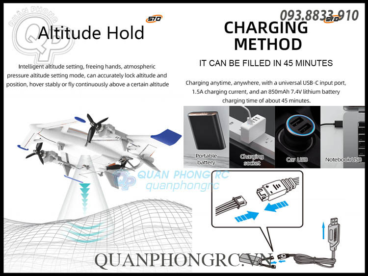 Bay đa chế độ: Dễ dàng chuyển đổi giữa chế độ VTOL 2 trục, 3 trục và chế độ bay cánh cố định.