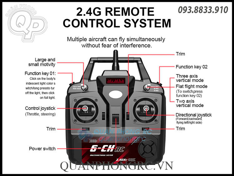 * Extended Control Range: 2.4G transmitter with a 200-meter remote control range.