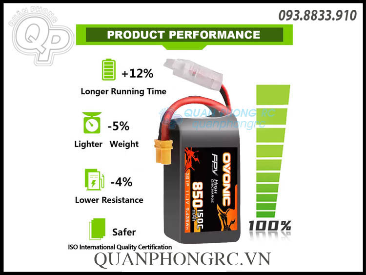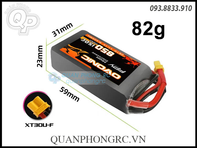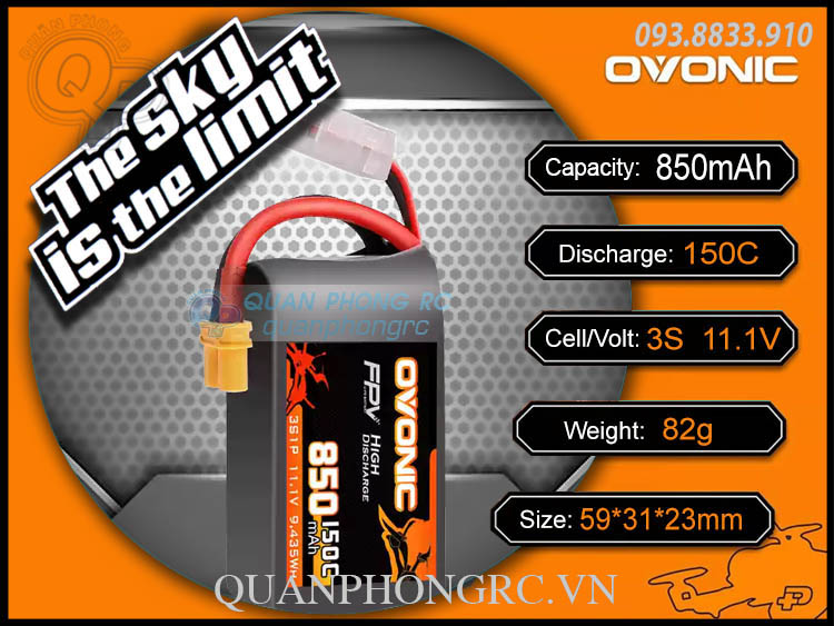 Ovonic FPV 850mAh 3S 150C 11.1V LiPo Battery XT30 Plug