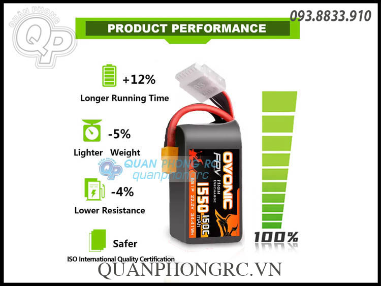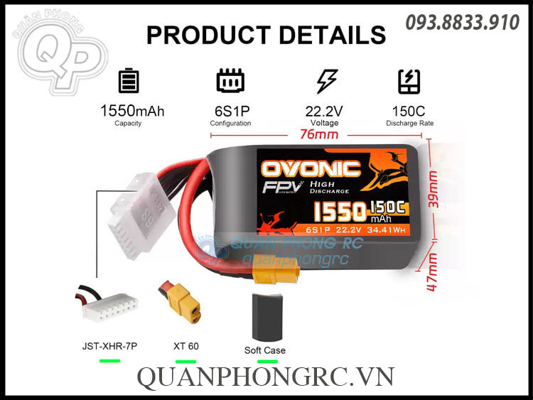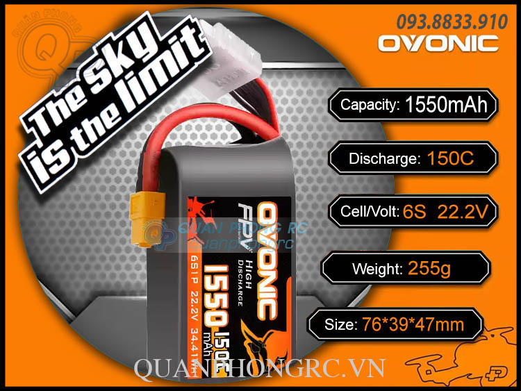 Ovonic FPV 1550mAh 6S 150C 22.2V LiPo Battery XT60 Plug