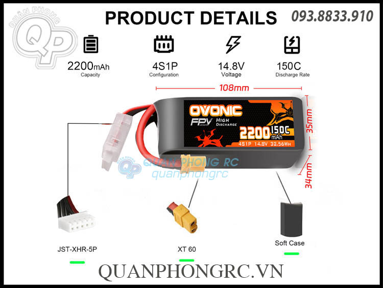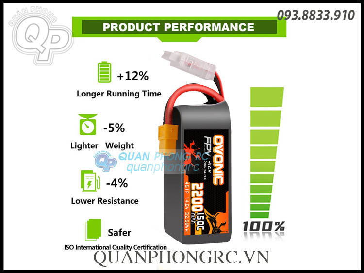 Ovonic FPV 2200mAh 4S 150C 14.8V LiPo Battery XT60 Plug
