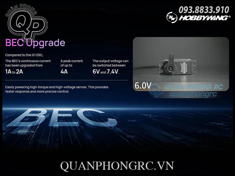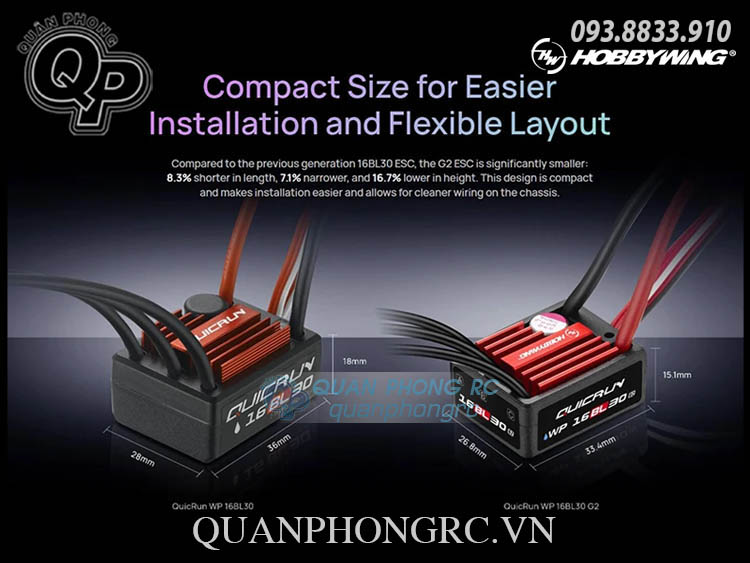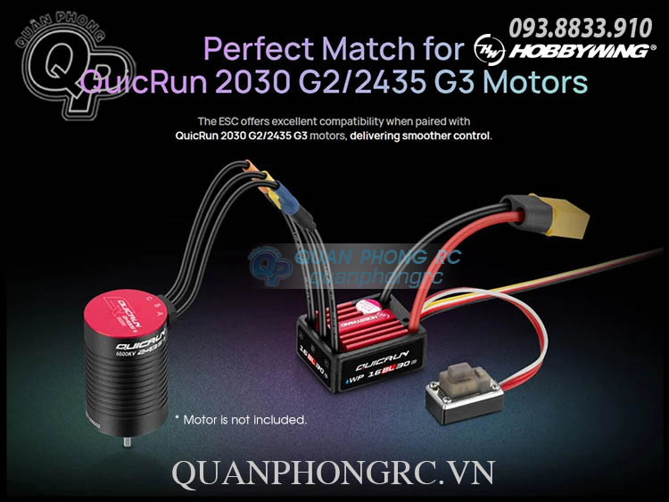 - Đây là ESC không chổi than, không cảm biến, chống nước Hobbywing QUICRUN WP-16BL30 G2, dành cho các mẫu xe điều khiển từ xa tỉ lệ 1/16 và 1/18. ESC này được trang bị công nghệ Freewheeling thông minh, giúp tăng hiệu suất vận hành, giảm nhiệt độ khi hoạt động, cải thiện độ ổn định và độ tin cậy.