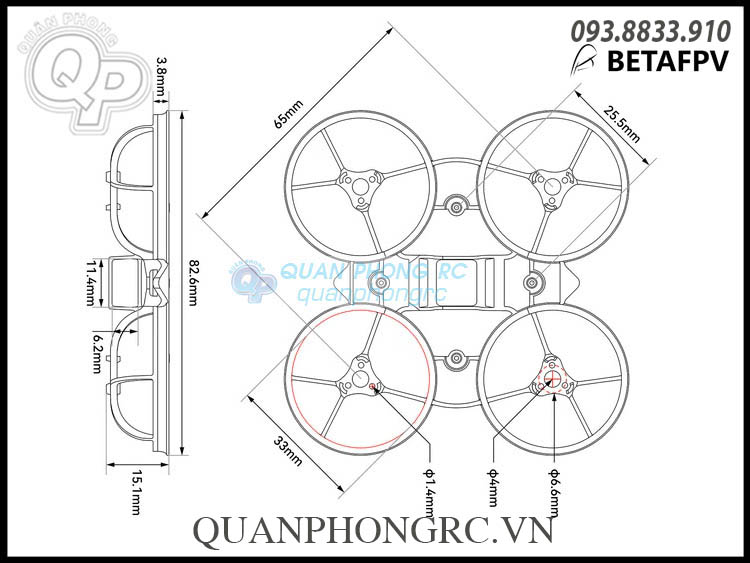 Lỗ gắn Flight Controller: 25.5×25.5mm