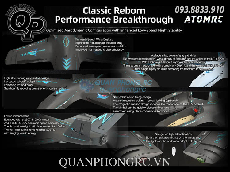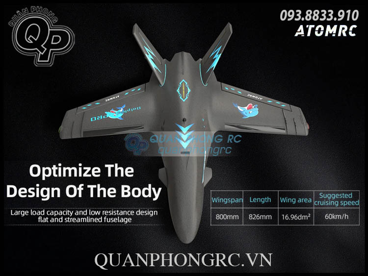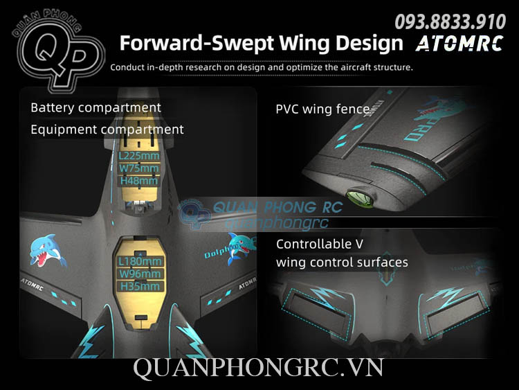 ATOMRC Dolphin PRO FPV Fixed Wing Airplane EPP Kit (Không Gồm Đồ Điện) Gray